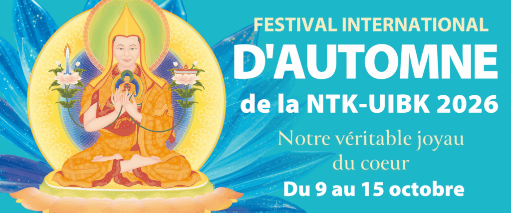 ♦ Au cours du festival d’automne 2026, Guèn-la Kelsang Dékyong accordera la transmission de pouvoir du Bouddha de la Sagesse Djé Tsongkhapa. Elle expliquera aussi comment développer et améliorer notre foi en notre Guide Spirituel, vu comme un avec Djé Tsongkhapa, et sur la pratique de Migtséma, le mantra et la prière de requête et de louange spéciales à Djé Tsongkhapa.